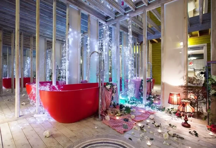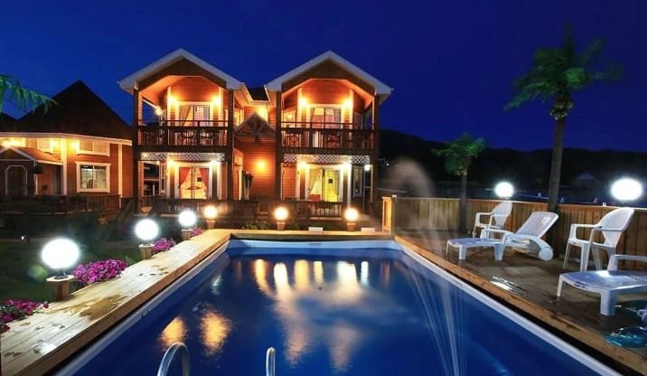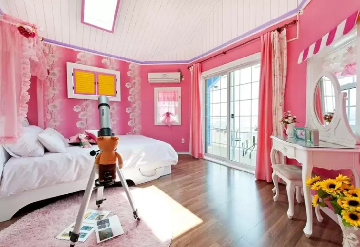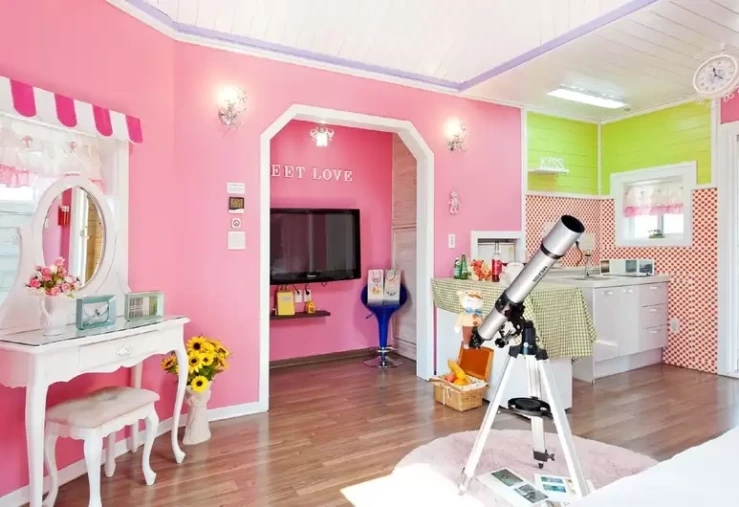 독채형 객실이 나란히 모여 있는 외관은 작은 동화 마을을 연상케 한다. 공주님 샹들리에 등 동심이 마구 샘솟는 인테리어도 인상적이다. 비너스 등 일부 객실에는 천장 창문으로 침대에 누워 하늘도 볼 수 있다.
