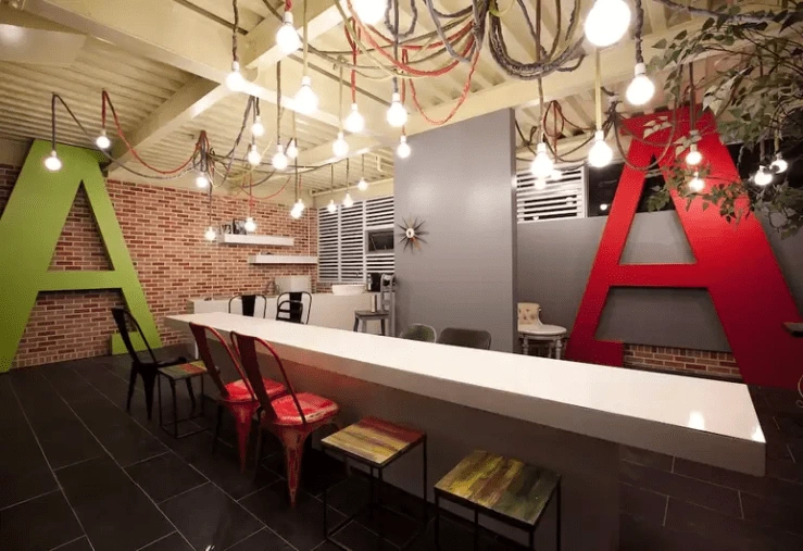 경주하면 흔히 떠올리는 고정관념을 깨는 숙소이다. 주변 경관을 최대한 만끽할 수 있도록 객실마다 통창으로 꾸며졌다. 화이트톤의 인테리어도 군더더기 없이 깔끔하다. 카페 그라피티 등의 포인트로 더 HIP한 느낌이 든다.