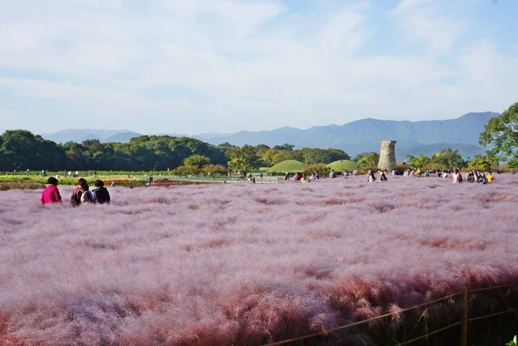 첨성대에는 계절마다 각기 다른 꽃과 풍경이 펼쳐진다. 특히 봄이면 유채꽃, 가을이면 핑크 뮬리 물결이 일렁인다. 인근에 교복을 대여하는 가게도 있으니, 수학여행 그 시절로 돌아가 색다른 인생샷을 찍어보는 것을 추천한다!
