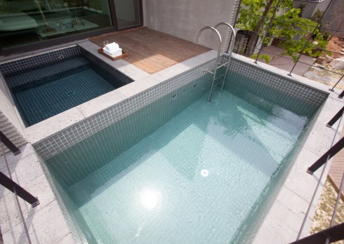 모든 객실에는 개별 테라스가 마련되어 있다. 그중에서도 201호에는 프라이빗하게 즐길 수 있는 수영장이 마련되어 있다. 따뜻한 온수를 채워 제트 스파를 즐길 수도 있다. 물론 야외에는 공용 수영장도 준비되어 있다.