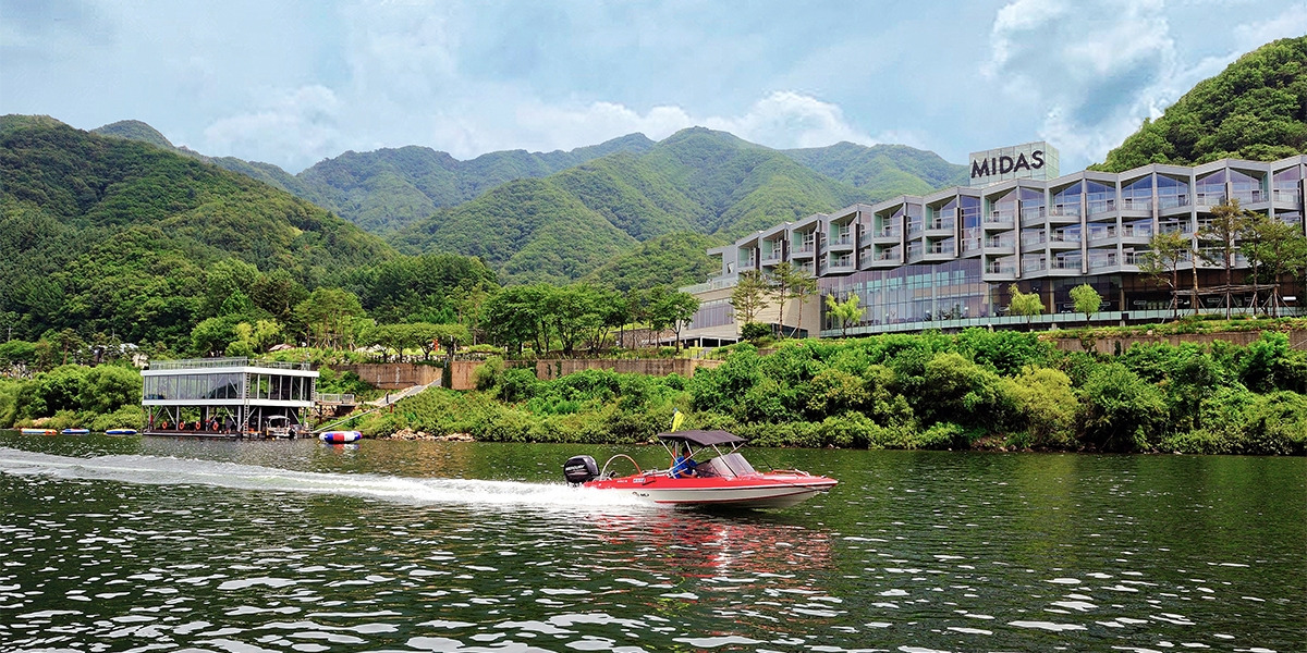 경기도 청평 북한강변에 위치한 마이다스 호텔은 직선과 곡선이 어우러진 건물 외관이 주변의 풍경과 어우러지며 전 객실에서 북한강을 감상할 수 있다. 대교에서 운영하는 키즈잼 프로그램, 글램핑 체험, 여름철에는 수상 액티비티 체험도 가능하여 꾸준한 인기를 얻고 있다.