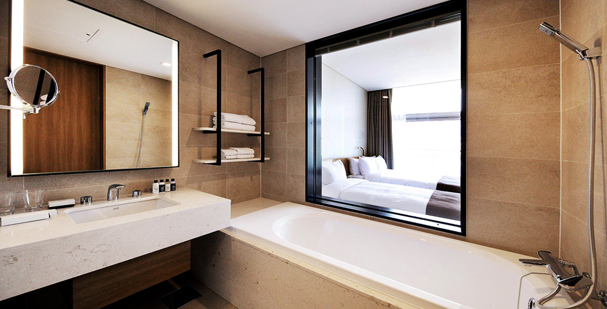 욕실에는 샴푸, 컨디셔너, 바스젤, 로션 일체가 준비되어 있다. 그 외 샤워캡, 면봉, 화장솜, 빗 등 사소한 부분까지 준비되어 있다. 환경보호 차원에서 일회용품인 칫솔 세트와 면도기는 제공되지 않으니 참고하여 개인용품을 가져오거나 미니바에서 구매하여 사용할 수 있다. 그리고 인기 가족 호캉스 숙소답게 유아용품을 무료로 대여해주고 있다. 대여 가능 물품은 공식 홈페이지에서 확인 가능하며 참고로 수량이 한정적이라 서둘러야 한다..!