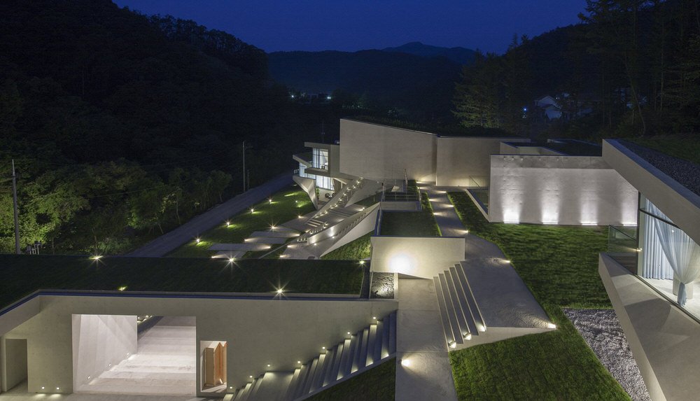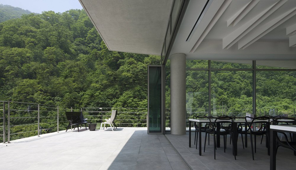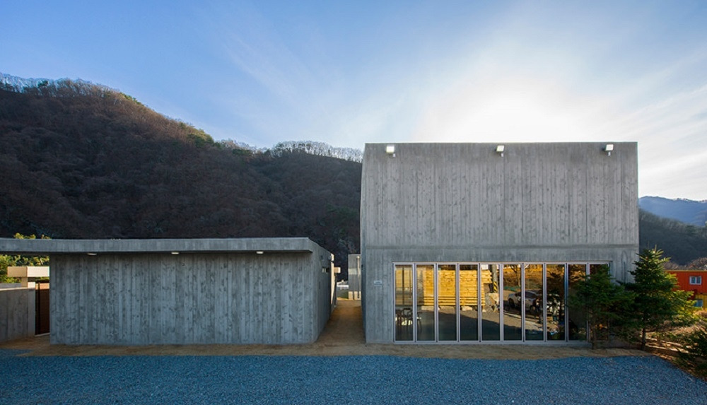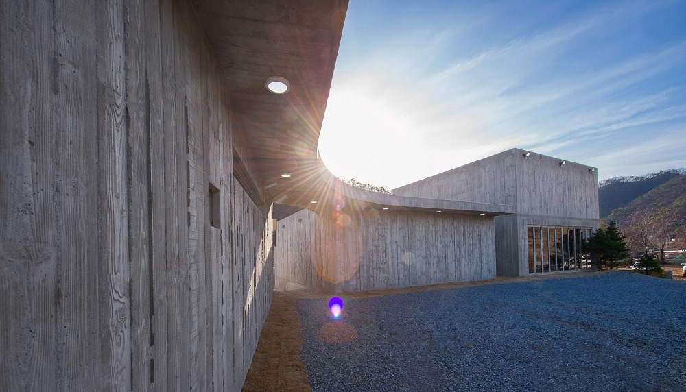 유명 건축가 곽희수 대표에 의해 탄생한 유리트리트는 노출 콘크리트를 그대로 활용한 유니크한 구조의 건물이 2,700여평 경사진 자연을 따라 어우러지며 새로운 아름다움을 제시하고 있다.