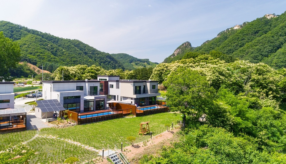 홍천강 바로 앞에 위치해 리버뷰와 마운틴뷰를 동시에 볼 수 있다. 공기는 말할 필요 없이 좋다. 그리고 오션월드까지 차로 약 10분이면 갈 수 있어 접근성 역시 좋은 편이다.