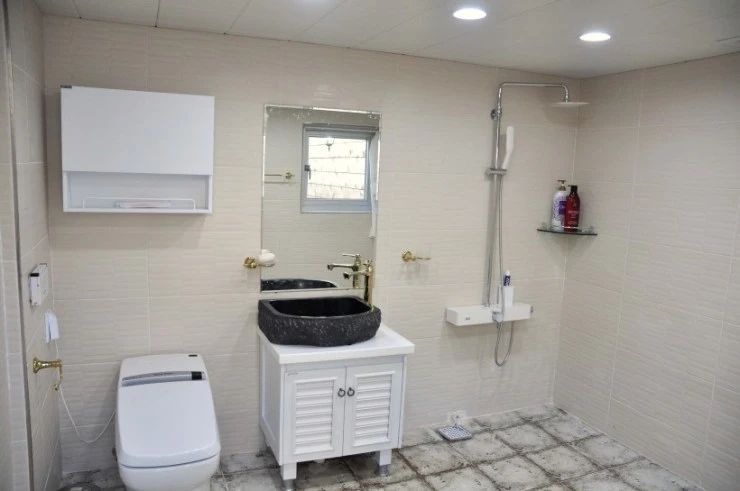 욕실 어메니티로 샴푸와 린스, 일회용 칫솔, 치약, 수건 등이 제공된다. 수건은 원하는 만큼 넉넉하게 준비해준다. 폼클렌징, 세안제, 바디 스펀지 등 개인 위생용품은 따로 챙겨가야 한다..