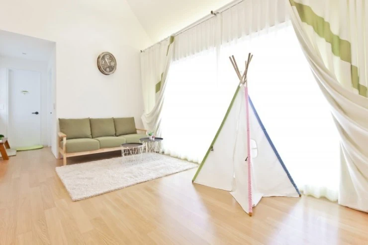전체 객실이 3개로, 다른 숙소에 비해 사생활 보호 수준도 높고 여유로운 편이다. 넓은 창과 복층형 구조, 높은 천장으로 고급스러운 인상을 준다. 1층 바비큐 시설에서는 텐트 덕분에 캠핑 온 기분도 낼 수 있다.