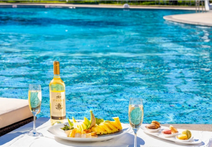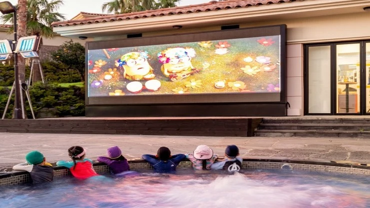 야외 수영장은 성인과 어린이풀 모두에 온수풀을 갖춰, 사계절 내내 이용 가능하다. 매일 오후 8시부터 10시까지 풀 사이드 카페에서는 간식이 무제한으로 무료 제공된다.
