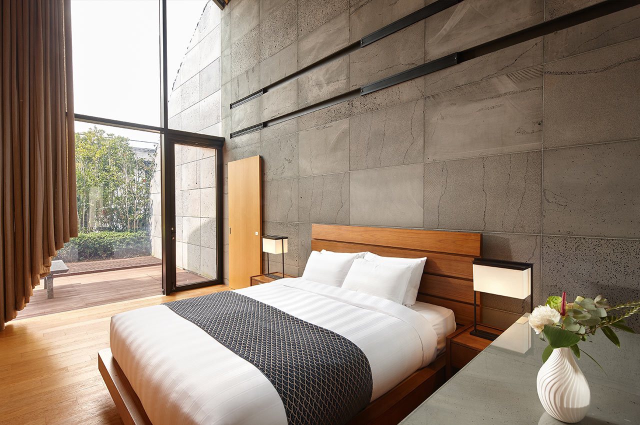 그리하여 각각 다른 매력을 가진 A블록부터 E블록까지 각 건축가별로 나누어진 72개의 객실이 탄생하게 되었다. 이 객실들은 제주 자연에서 영감을 받아 완성한 건축물로 마치 하나의 작품에 머무는 듯한 느낌을 받을 수 있다.