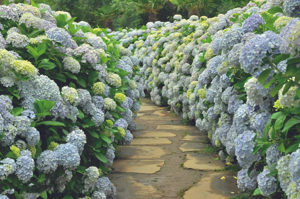 카멜리아 힐은 6만여 평으로 동양에서 가장 큰 동백 수목원이다. 약 6천여 그루의 동백나무가 울창한 숲을 이루고 있을 뿐만 아니라 계절마다 독특하고 아름다운 꽃이 동백과 어우러지며 아름다운 풍경을 연출해준다. 요즘에는 수국이 만개했다고 한다.