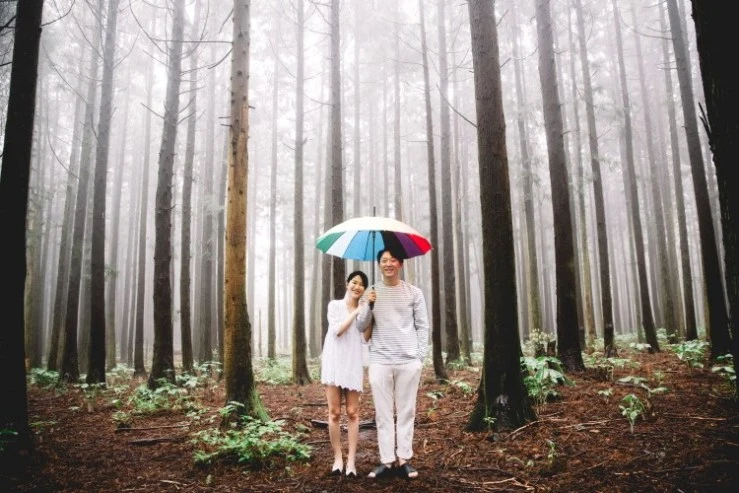한라산 밑에 자리한 사려니 숲길은 빽빽히 심긴 삼나무 길이 운치있는 곳이다. 다른 관광지와 달리 조용하고 시원해 여름철 셀프웨딩 촬영장소로 적극 추천하고 싶은 곳이다. 새벽녘이나 비가 살짝 내리는 날에는 안개와 함께 분위기 있는 사진을 만날 수 있고, 낮에는 빼곡한 숲 속 한줄기 햇빛이 포인트 조명처럼 멋진 사진을 찍을 수 있게 도와준다.
