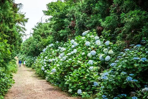 보롬왓에서는 수국길도 만나볼 수 있는데, 사람들이 붐비는 종달리나 위미리와 달리 아직 잘 알려지지 않은 곳이라 한적하게 촬영을 즐길 수 있다. 인위적이지 않고 자연스럽게 생긴 길이라 더욱 내추럴한 무드의 사진을 만날 수 있다.