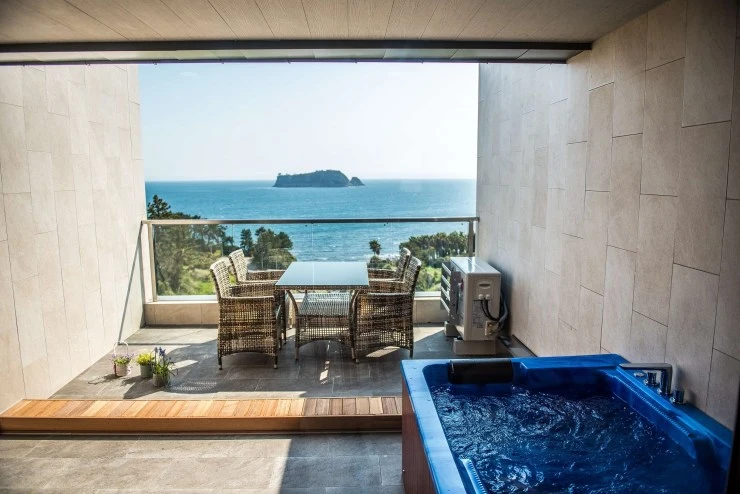 비스비제주 앤 팜빌리지의 시그니처 객실은 환상적인 오션뷰 전망을 자랑하여 허니문 숙소로 제격이다. 매우 넓은 규모의 야외 테라스에서는 아름다운 제주 바다를 조망할 수 있으며, 야외 스파와 바비큐도 즐길 수 있다.
