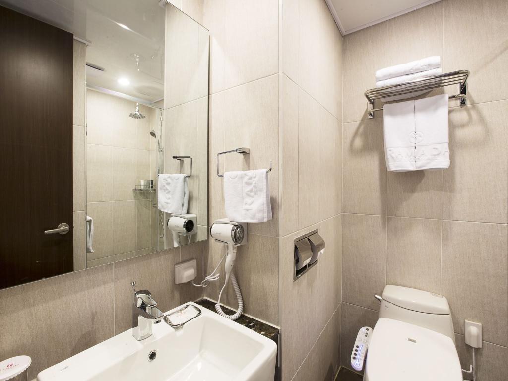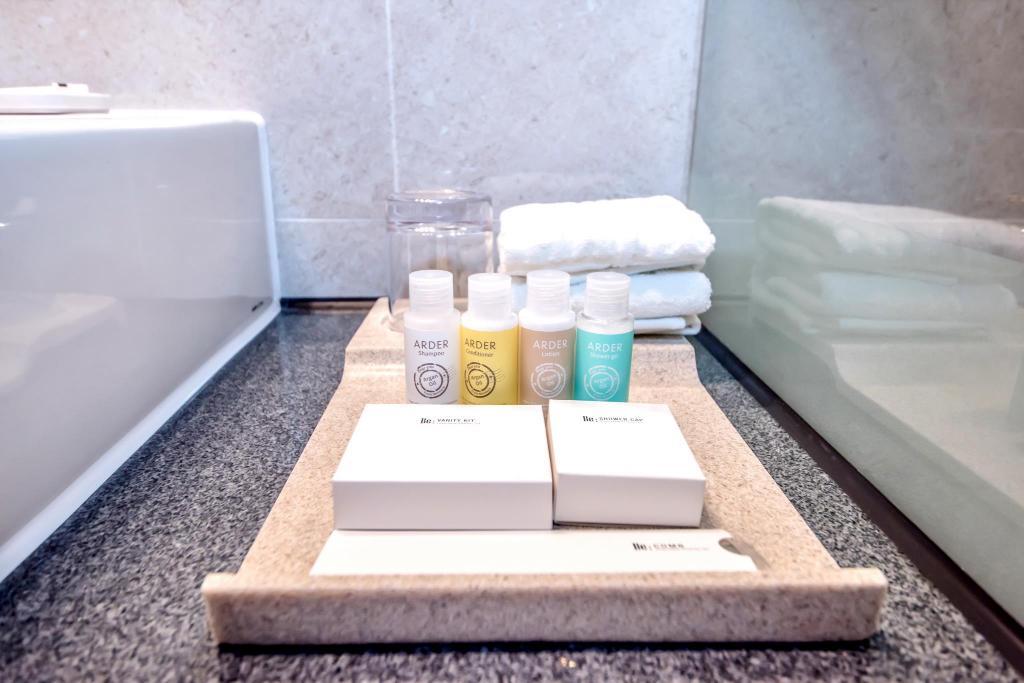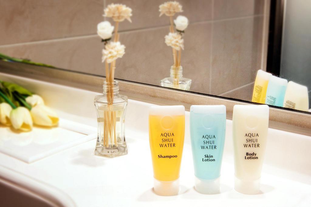 욕실에는 어메니티로는 샴푸, 린스, 바디워시, 바디로션, 비누 등 기본적인 세면용품과 빗, 샤워캡, 면봉 등 4성급 호텔다운 세심한 어메니티가 돋보인다.칫솔, 치약만 별도로 챙겨오면 될 거 같다.