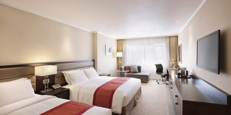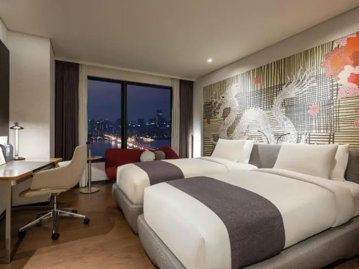 요즘 핫한 ‘놀면뭐하지’ 수영장 호텔, 노보텔 앰배서더 용산은 수페리어, 디럭스, 이그제큐티브, 프리미어 스위트 총 4가지 객실타입을 보유하고 있다. 디럭스룸은 모던한 인테리어와 아름다운 한강 전망을 감상할 수 있는 객실로 퀸베드와 싱글베드 2개 중 선택이 가능하다.