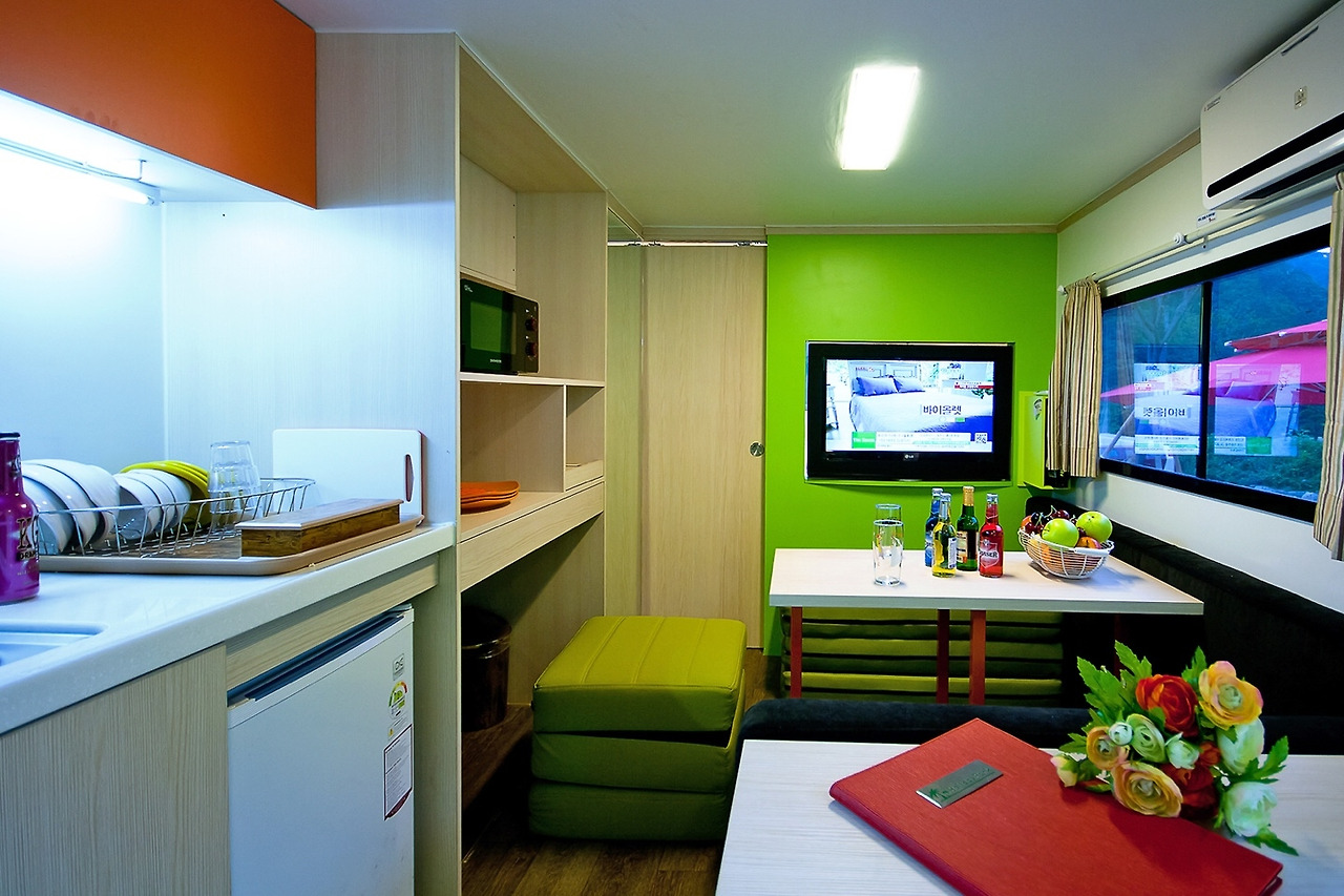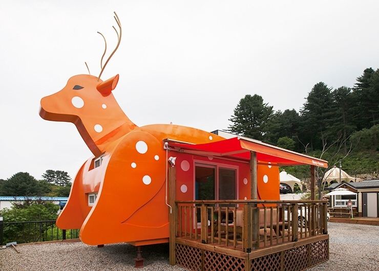 알록달록 동물 디자인의 외관이 인상적인 가평 동물 카라반은 아이와 함께하는 가족 여행 숙소로 추천하고 싶은 곳이다. 2층 침대가 놓인 객실에는 2인에서 최대 4인까지 머물 수 있고 주방과 욕실, 그리고 바비큐 테이블이 설치된 개별 데크까지 마련되어 작지만 알찬 구조를 갖추고 있다.