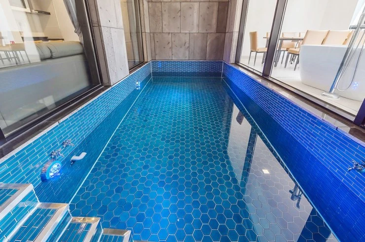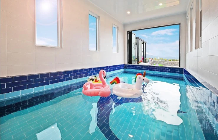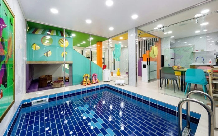 개별 스위밍 풀은 실내에 위치하고 있어 날씨에 구애받지 않고 사용할 수 있다. 수영장 크기도 2.5*7(m)로 넓어 아이들과 물놀이를 즐기기 안성맞춤이다.