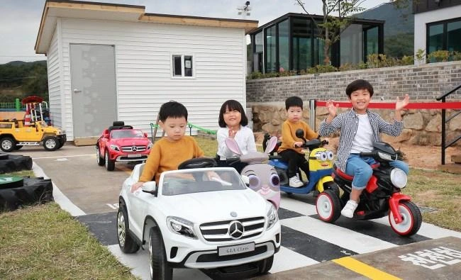 아이놀자 키즈풀빌라에는 200평 규모의 넓은 전동차 트랙도 있어 아이들이 참 좋아한다. 마당에는 게이트볼, 트램폴린, 야외 미끄럼틀, 모래놀이 등의 놀이시설도 있어서 아이들과 어른들 온 가족이 모두 즐거운 시간을 보낼 수 있다.