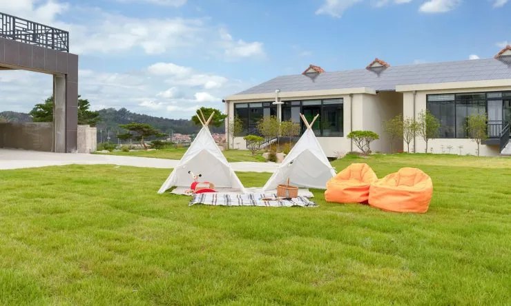 펜션 내에는 공용으로 사용 가능한 넓은 야외 풀장과 마당, 다양한 장난감들이 준비돼있어 아이들과 신나는 여름휴가를 보낼 수 있다.