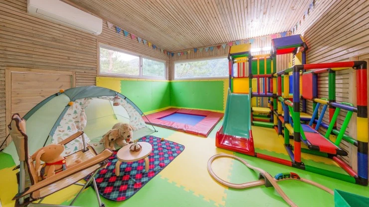 홍천에 위치한 하늘호수펜션은 다양한 즐길 거리로 아이들과 부모님들의 취향을 모두 저격하는 펜션이다. 사계절 물놀이를 즐길 수 있는 실내 수영장과 키즈 카페를 옮겨놓은 듯한 실내 놀이터는 기본 옵션으로 객실에 갖추고 있다.