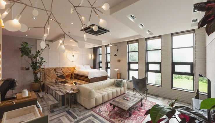 복층으로 이루어진 객실은 고급스러운 인테리어와 넓은 객실 면적을 자랑하며, 편의 시설도 꼼꼼히 갖춰져 있어 호텔이 부럽지 않다. 또한 운영하고 있는 카페에서 조식을 무료로 서비스하고 있으며, 자전거 대여 서비스도 제공하고 있어서 숙박객들의 만족도가 높은 편이다.