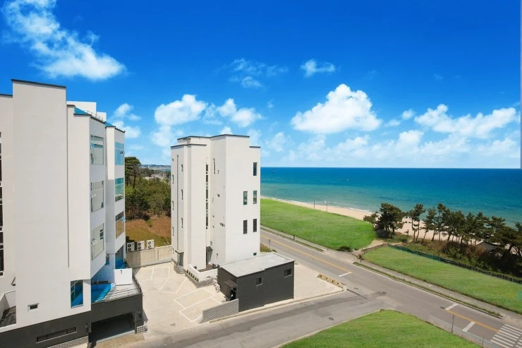 순긋해변 바로 앞에 위치 있어 여름휴가지 숙소로 최고인데다 경포 해변과 초당순두부 마을 등의 주요 관광지도 7분 거리로 매우 가까워 즐거운 여행을 즐길 수 있다.