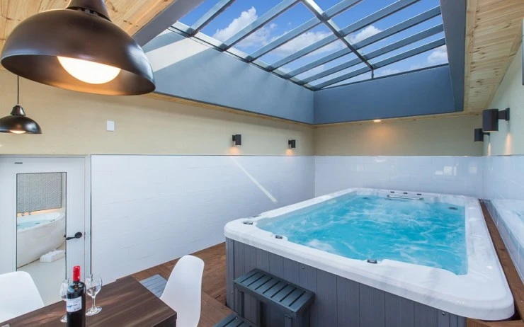 객실 내에는 개별 수영장과 스파, 바비큐를 즐길 수 있다. 수영장은 무려 가로 5.5m, 세로 1.7m로 아쉬움 없이 넉넉한 규모를 자랑한다. 스파시설도 별도로 갖춰져 있어 여름휴가 숙소로 딱이다.