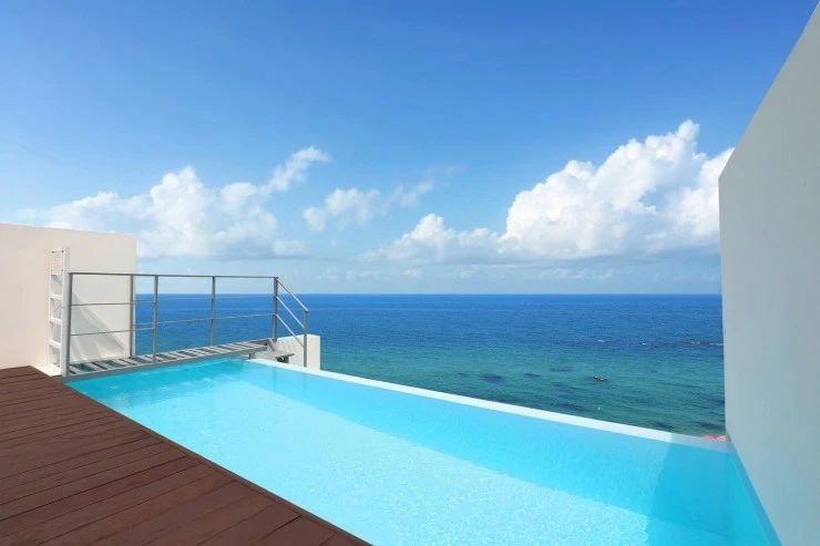 다만 1층 야외 수영장의 경우 미온수 추가가 가능하나 루프탑 수영장은 불가능하니 참고하자. 객실은 화이트 톤으로 매우 모던하고 깔끔해 사진도 잘 나온다. 욕조 혹은 스파시설도 갖춰져 있어 아름다운 오션뷰와 함께 반신욕을 즐길 수 있다.
