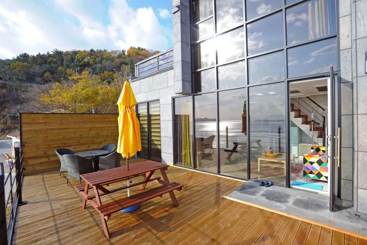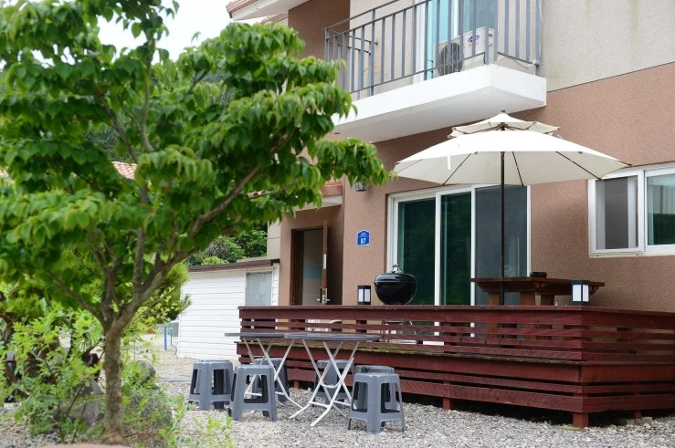 남해 바다향기 펜션 B동에는 개별 테라스, 수영장도 갖춰져 있어 더욱 프라이빗한 시간을 보낼 수 있다. 수영장 이용 시 사전에 미리 예약을 해야 하며 1회 5만 원의 추가 요금이 있다.