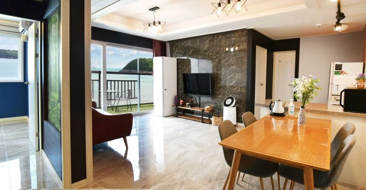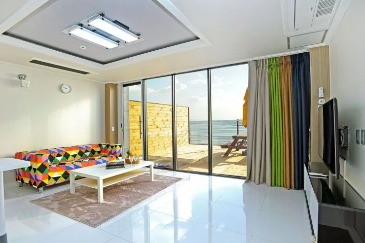 B동은 톡톡 튀는 인테리어와 다양한 개별 부대시설을 갖추고 있어 우리 가족의 힐링 쉼터로 딱이다. 객실은 복층으로 구성되어 있으며 어디에서든 아름다운 오션뷰를 즐길 수 있다.