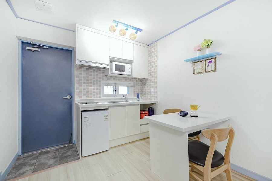 조식은 제공되지 않지만 객실에서 취사가 가능하고 냉장고, 전기밥솥, 전자레인지, 핫플레이트, 주방 집기 일체가 제공된다.