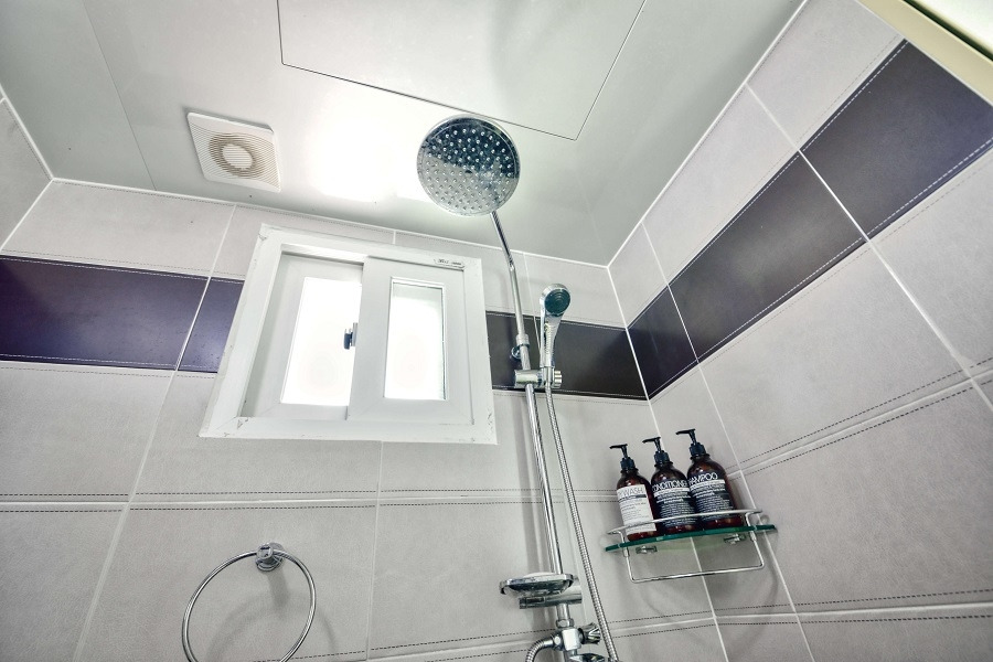 깔끔하고 큼직한 노을과바다의 욕실. 총 3개의 욕실이 준비되어 있어서 여러명이 함께 놀러와도 붐빌 걱정이 없다. 어메니티로는 샴푸, 바디워시, 수건 등 기본적인 제품만 제공된다. 칫솔과 면도기, 폼클렌징 등은 개별적으로 챙겨와야 한다.
