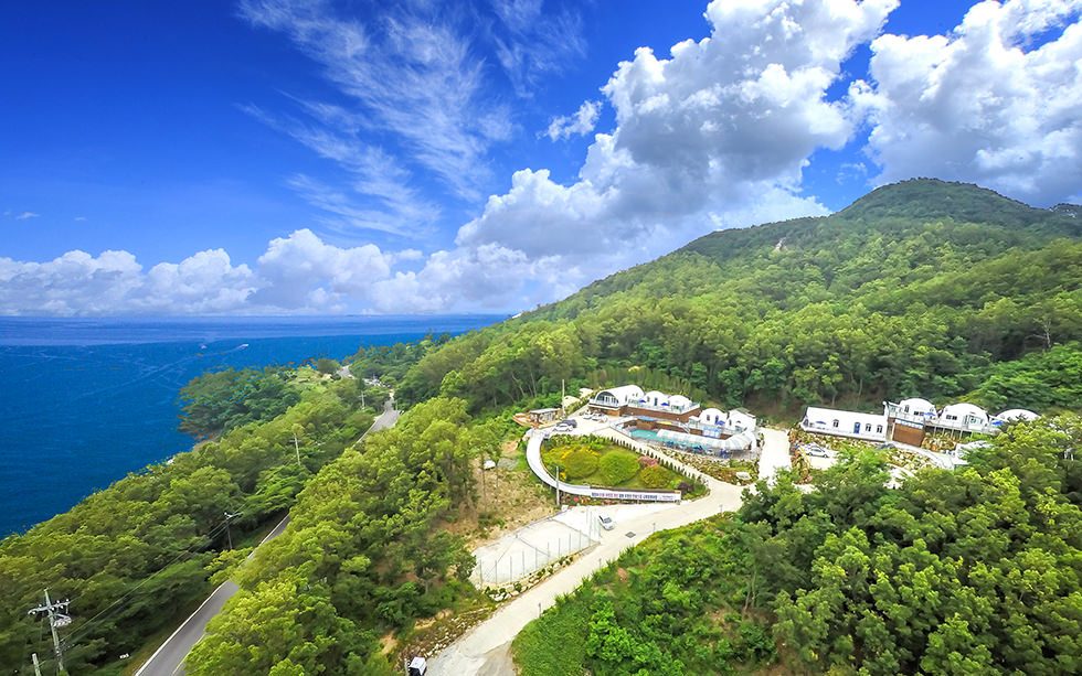 이글루 모양의 외관이 이색적인 하늘샘물펜션은 오션뷰와 객실 내 스파, 바비큐를 즐길 수 있고 키즈룸이 별도로 마련되어 가족 단위 여행객들에게 인기가 높은 곳이다. 추천해 드릴 객실은 2인에서 최대 4인까지 머물 수 있는 창밖을 보라 객실이다. 개별 스파와 바비큐 시설이 준비되어 있으며, 그 밖에 더블 침대, TV, 화장대, 식탁, 주방, 욕실로 구성돼 있다. 어메니티로는 샴푸, 린스, 바디워시, 핸드워시, 치약, 수건 등이 준비된다. 칫솔과 클렌징폼, 면도기는 준비되지 않으니 개인적으로 챙겨오면된다.