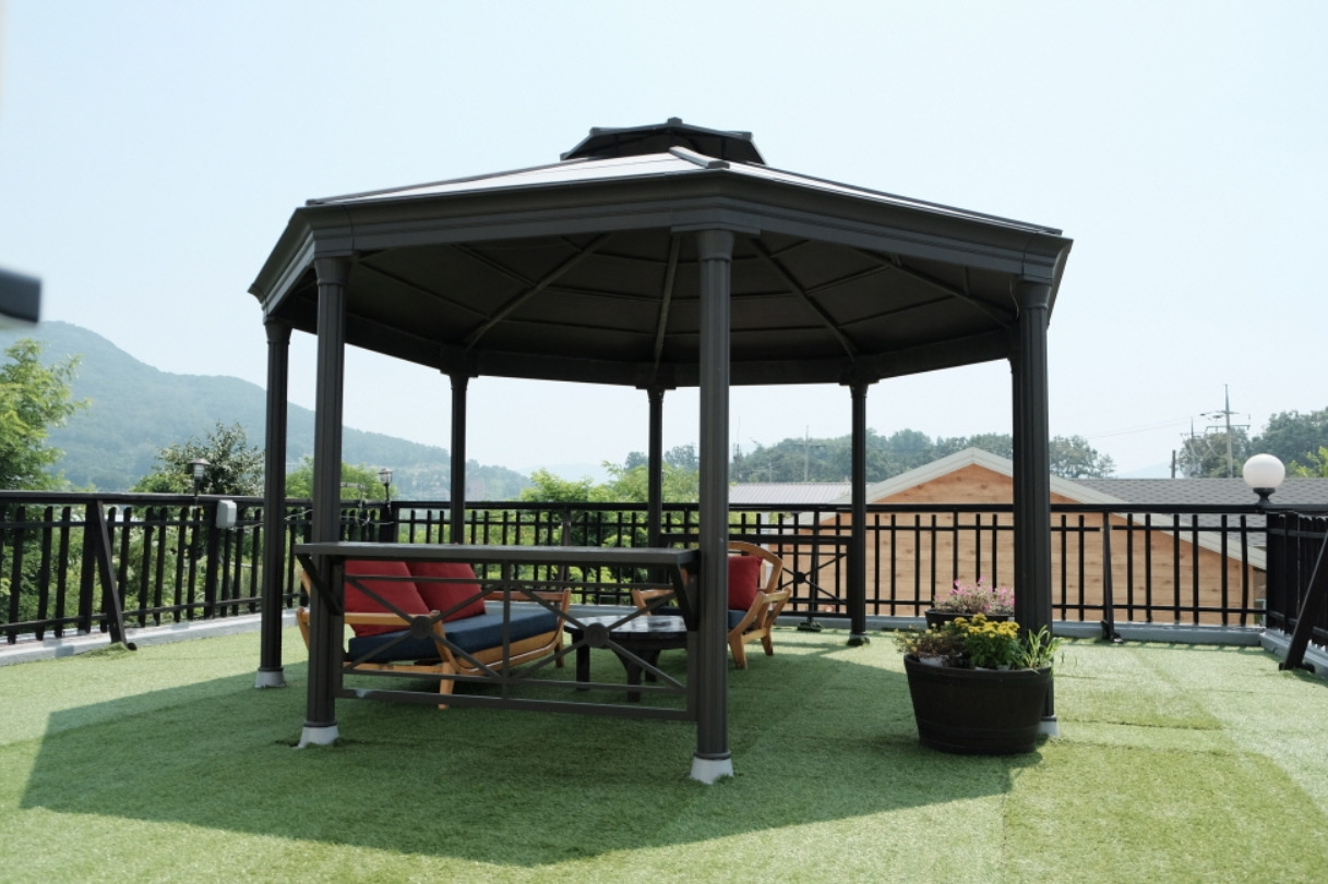 2층과 연결된 옥상에는 팔각정이 설치되어 있다. 바다 풍경을 바라보며 여유로움을 즐겨보자.