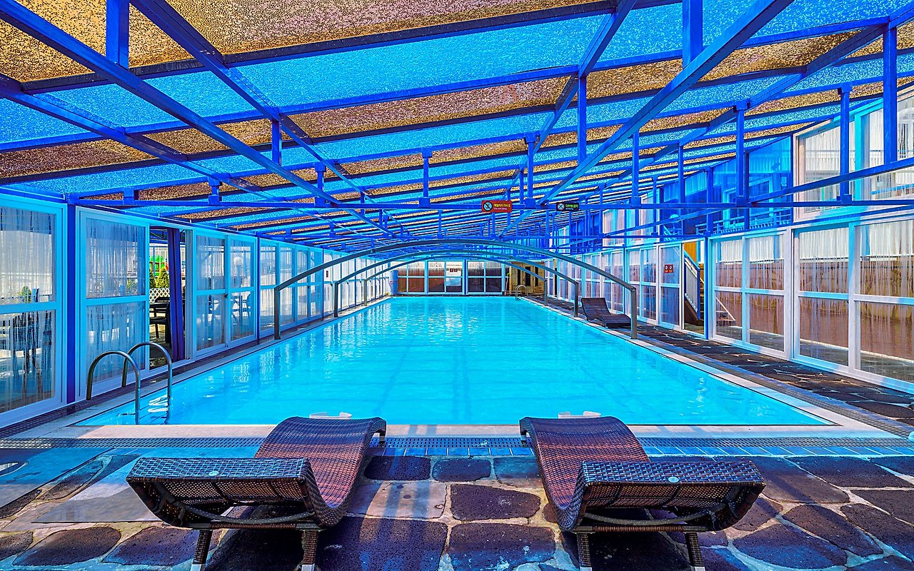 그뿐만이 아니라 투숙객을 위한 카페와 대형 수영장이 준비되어 있다. 수영장은 국내 유일 광천수를 이용해 아토피 치유에도 효과적이니 안심하고 물놀이 즐길 수 있다.
