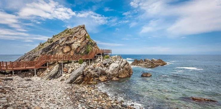 셔틀버스로 이동할 수 있는 정동진 부채길은 국내 해안단구 중 가장 규모가 크고 보존 상태가 뛰어나 천연기념물로 지정됐어요. 탐방로를 따라 해변을 둘러보는 코스를 추천한다. 슬리퍼보다는 운동화가 안전하니 꼭 참고하자.