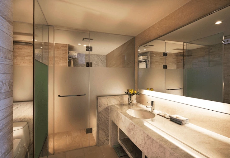 욕실 어메니티로 샴푸와 컨디셔너, 바디워시, 비누, 빗, 샤워캡, 수건, 샤워 가운 등이 제공된다. 개인위생용품인 칫솔과 치약, 면도기 등은 따로 준비해 와야 한다. 깜박했다면 근처 편의점을 이용하자.