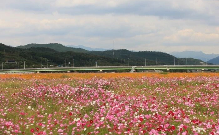 대구 하중도는 무려 22만여 평에 달하는 코스모스 물결을 만날 수 있어 가을 데이트 장소로 매우 인기가 많다. 분홍 코스모스와 황화코스모스를 모두 만날 수 있다. 또 다른 가을의 상징인 억새도 함께 구경할 수 있어 가을 커플 여행지로 추천한다.