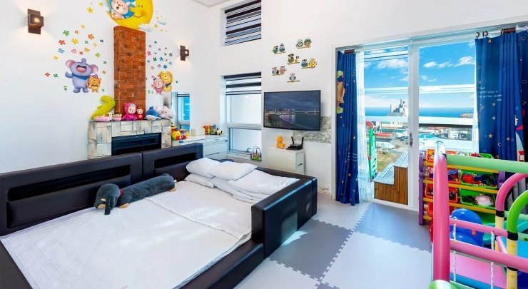 포뷰 펜션은 객실마다 콘셉트가 명확하다. 이중 A 401, A 402호 등 일부 객실은 대형 볼 풀 장이 설치된 키즈룸으로 운영 중이다. 캐릭터 블라인드부터 바닥 패드 등 아이들을 위한 배려와 사랑이 가득 느껴진다.