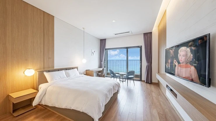 호텔형 객실은 어린아이를 동반한 3인 가족에게 특히 사랑받는 중이다. 원룸형 구조로 TV와 침대, 화장대, 에어컨, 냉장고, 식탁, 행거, 전용 욕실 등을 갖췄다. 테라스로 나서면, 손에 닿을 듯한 바다를 만날 수 있다.