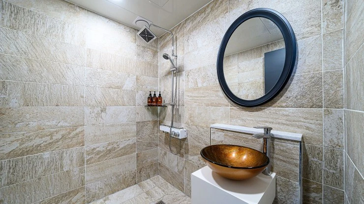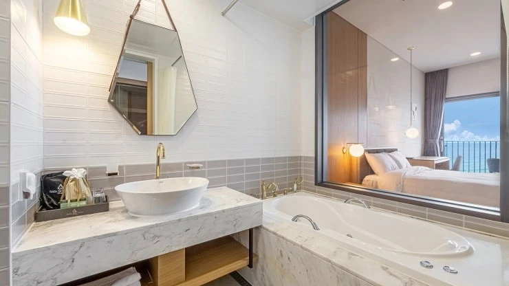 호텔형 객실 기준 욕실 어메니티로 샴푸와 컨디셔너, 바디워시, 치약, 비누 등이 제공된다. 수건과 헤어드라이어도 세면대에 비치돼 있다. 칫솔과 세안제 등 개인위생용품만 준비해준다.