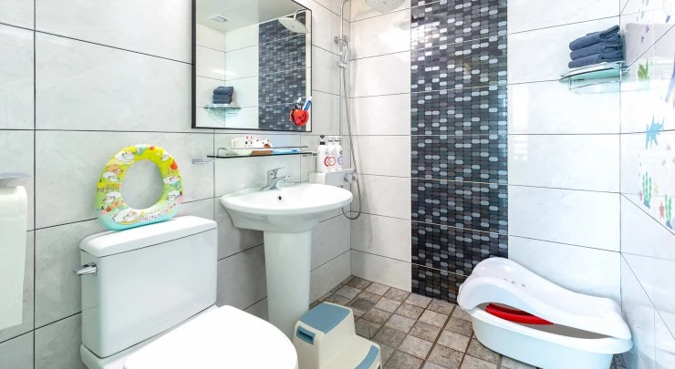욕실 어메니티로 샴푸와 린스, 바디워시가 리필형 용기에 제공된다. 치약과 비누, 수건 등도 넉넉하게 준비해준다. 이외 아기 욕조와 발 받침대, 유아 변기 커버가 구비돼 있어, 따로 챙겨올 필요 없다.