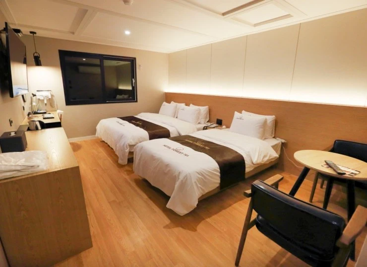 트윈룸은 더블베드와 싱글베드가 있어 여유로운 휴식이 가능하다. 전 객실 넷플릭스가 설치되어 있어 친구들과 호캉스에도 찰떡 재질이라는 사실!