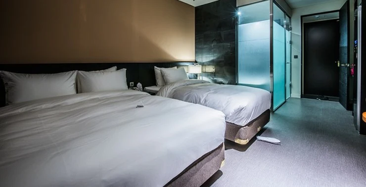 리버틴호텔은 전 객실 욕조와 스타일러를 구비하고 있는 센스 있는 대구 호텔이다. 트윈룸은 최상급 에이스 침대가 퀸/싱글 구성으로 준비되어 있어 편한 잠자리를 보장한다.
