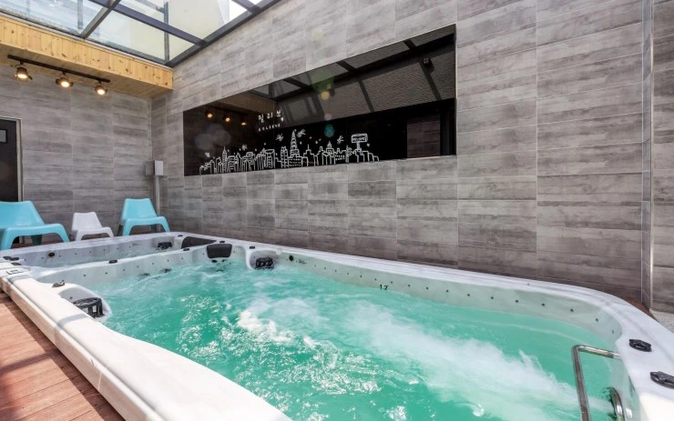 스파 전용 객실을 제외하고 모든 객실에 개별 수영장과 스파 시설을 함께 구비했다. 같은 공간에 설치해, 이동하기 편하다. 수영장 온수 이용 요금은 5만 원이며, 스파는 무료이다. 두바이풀빌라는 키즈존이 마련돼 있어, 가족 여행객에게도 좋다. 미끄럼틀, 트램펄린 등 아이들 놀 거리가 가득하다.