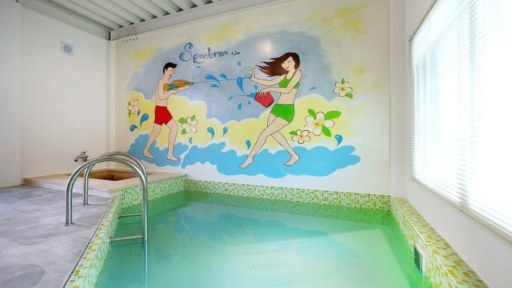 취향 따라 원하는 나라를 고르기만 하면 된다. 전 객실 개별 수영장과 바비큐 시설을 갖췄다. 수영장 벽화도 테마에 맞춰 그려져 있다. 배경으로 사진 찍기 좋다. 이외 부대시설로 펜션 내 편의점이 있다.