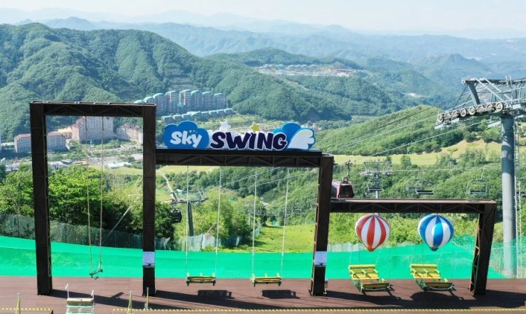 스카이 스윙은 올스테이가 추천하는 홍천 비발디 파크 최고의 인생샷 포인트이다. 곤돌라 정상 휴게소에 위치해, 주변 경관이 한눈에 들어와서 제대로 힐링할 수 있는 곳이다. 올해 10월 25일에 운영 종료되니, 그전에 꼭 방문하자.
