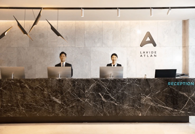 로비는 3층에 리셉션과 함께 자리했다. 1~2층에는 편의점과 카페, 음식점 등 다양한 점포가 입점해 있다. 호텔 부대시설로는 피트니스와 코인 세탁실을 갖췄다. 피트니스는 오전 7시부터 저녁 10시까지 운영된다.