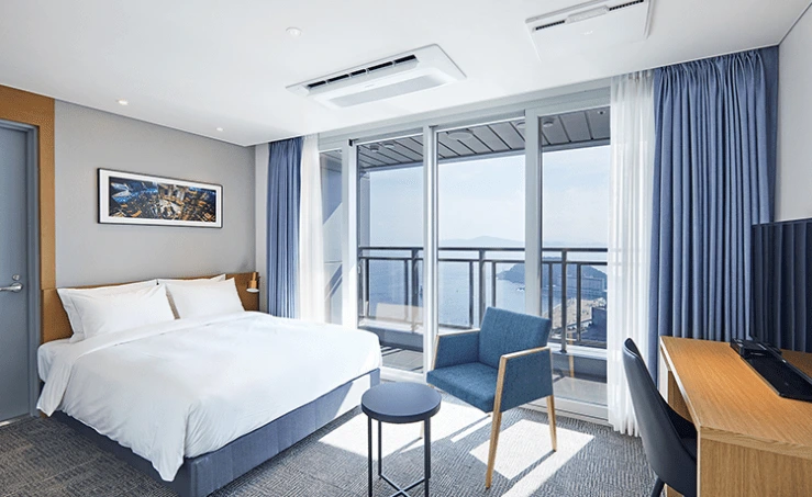 비교적 신축 숙소로 외관과 내부 모두 깔끔하고 고급스럽다. 객실은 고객 동선을 고려해 설계됐다. 올스테이 하면 5만 원대부터 예약할 수 있다. 해운대에서 보기 드문 가성비 호텔이다.