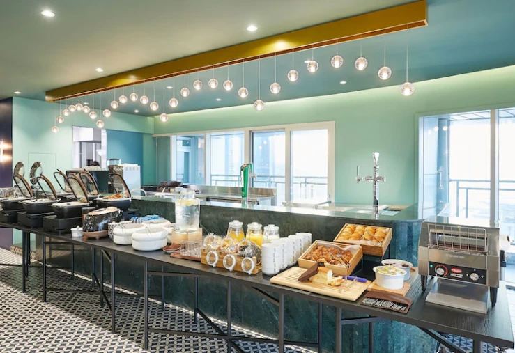 조식은 32층 레스토랑 아미티스에서 운영된다. 한식과 양식을 고루 갖춘 인터내셔널 뷔페식이다. 성인 이용 요금은 2만 3천 원이며, 사전 예약 시 2만 원이다. 코로나19로 인해 제공이 중단될 수도 있다.