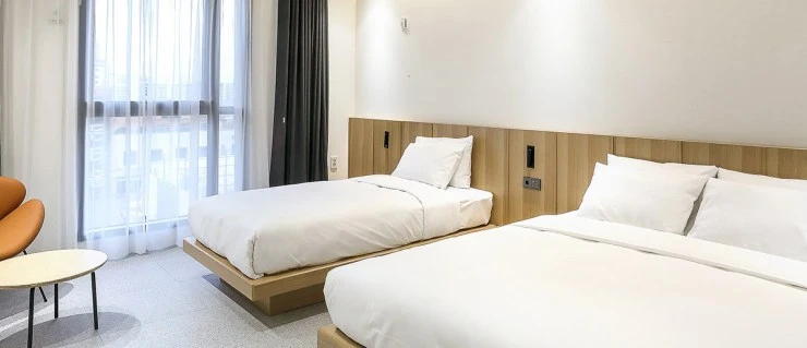디럭스 패밀리 트윈룸은 킹/슈퍼싱글 베드로 구성되어 편하게 쉴 수 있는 객실이다. 미세먼지 차단 공기청정 시스템, 스타일러가 있어 매우 쾌적한 원주 청정 숙소이다.